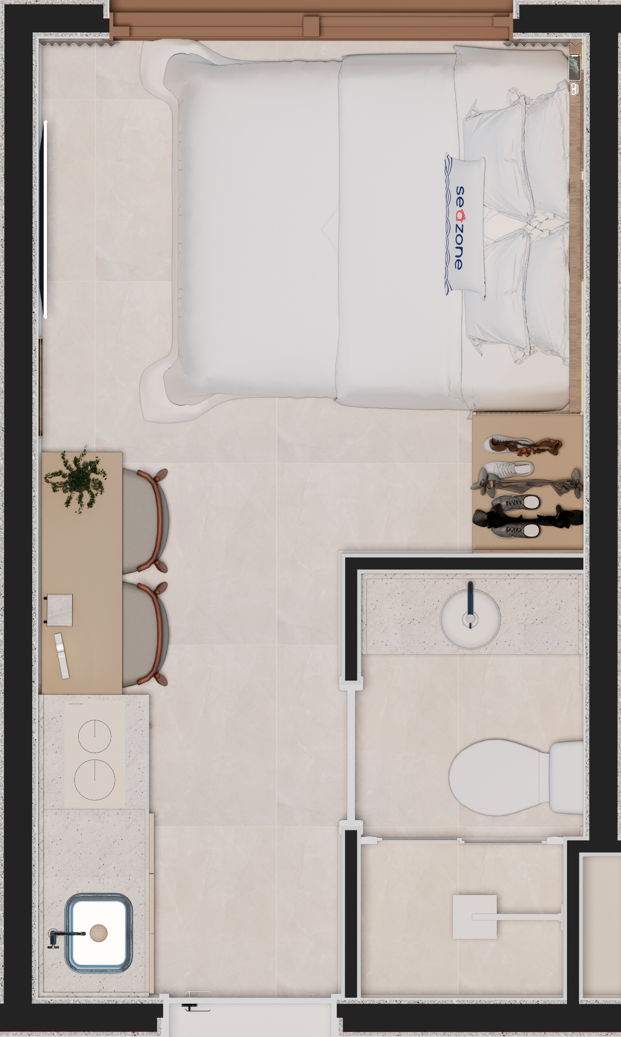 O Bonito Spot possui 53 unidades distribuídas em 4 pavimentos, 12 vagas de garagem rotativas, área de lazer coberta, área de lazer descoberta e piscina aquecida.