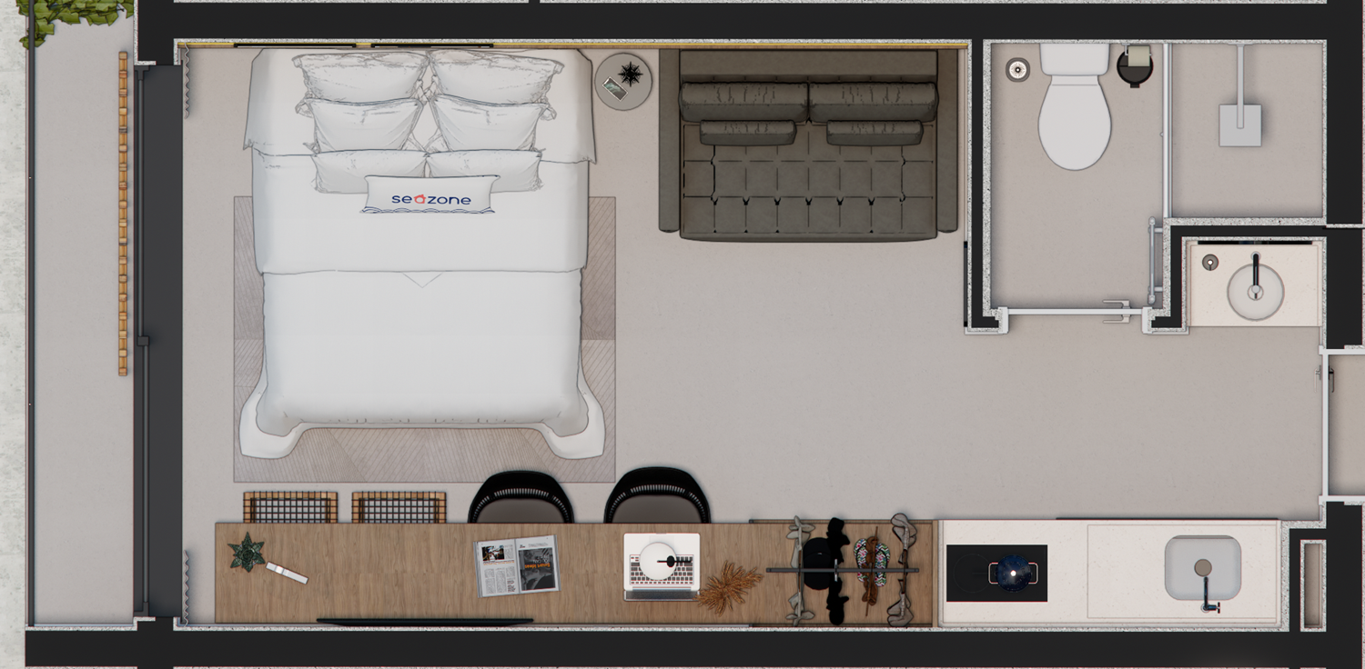 1 Quarto com terraço, tipo único