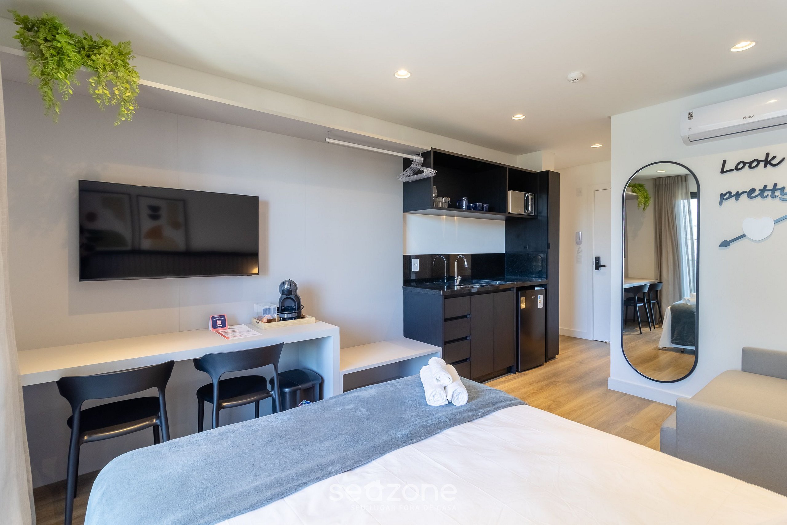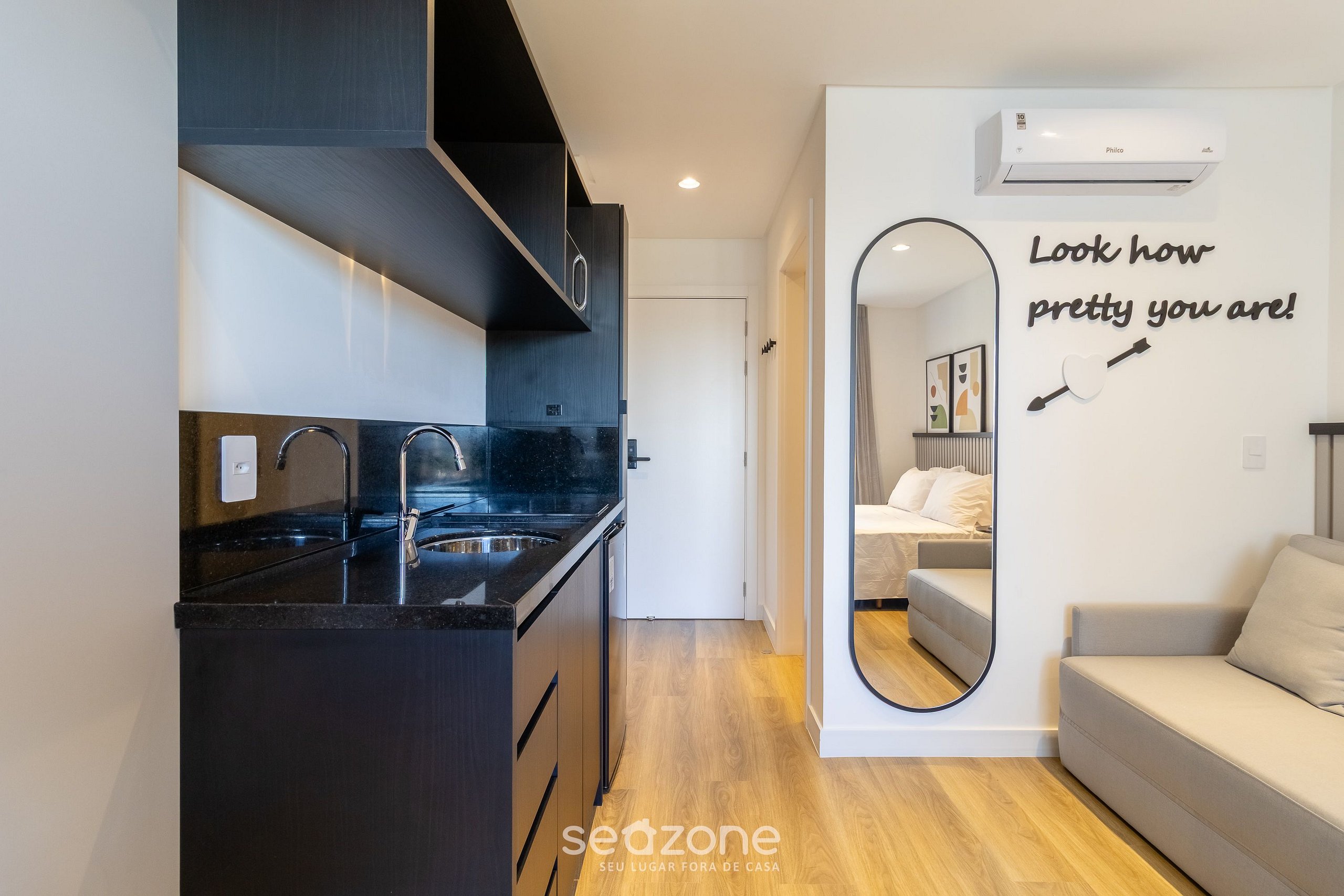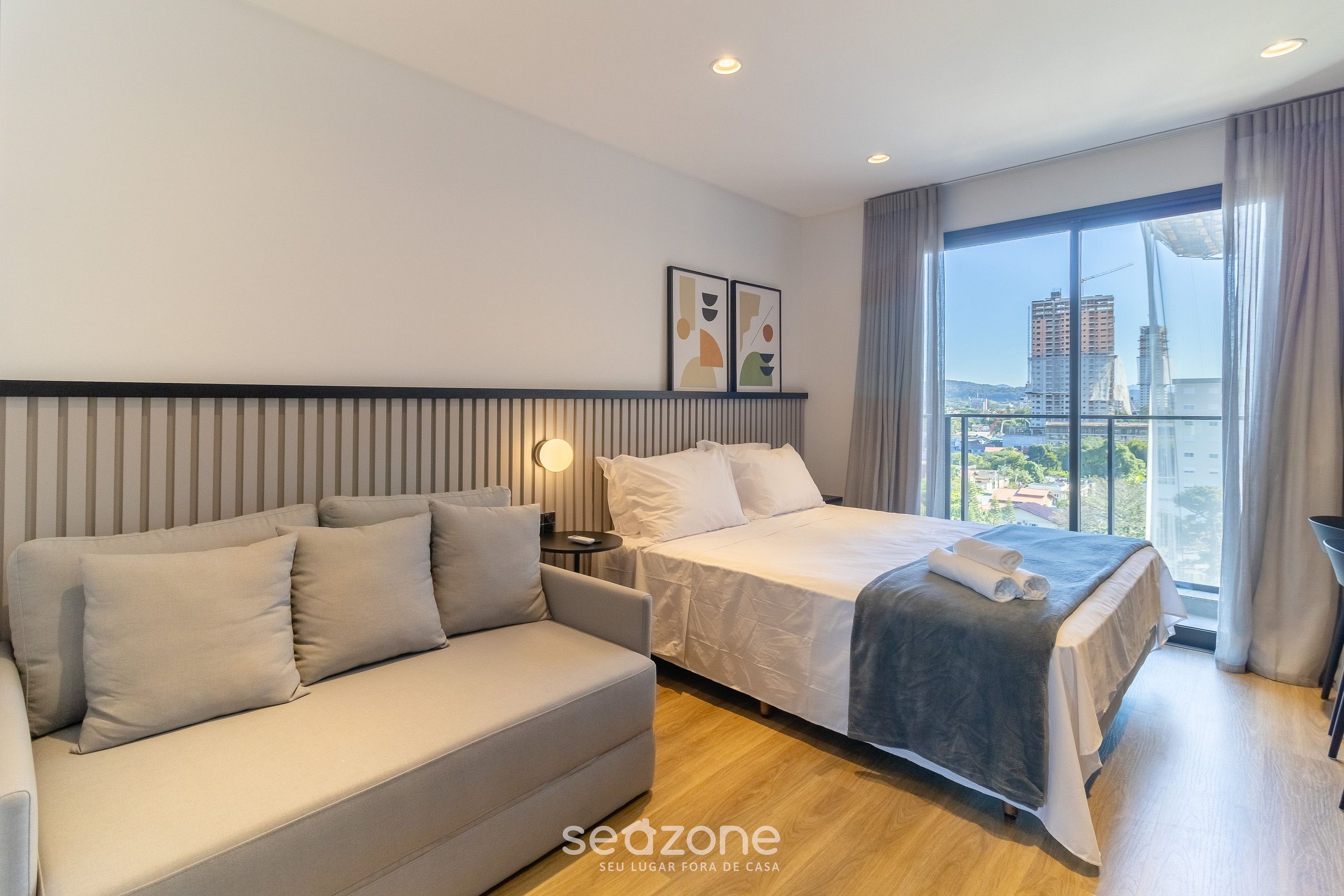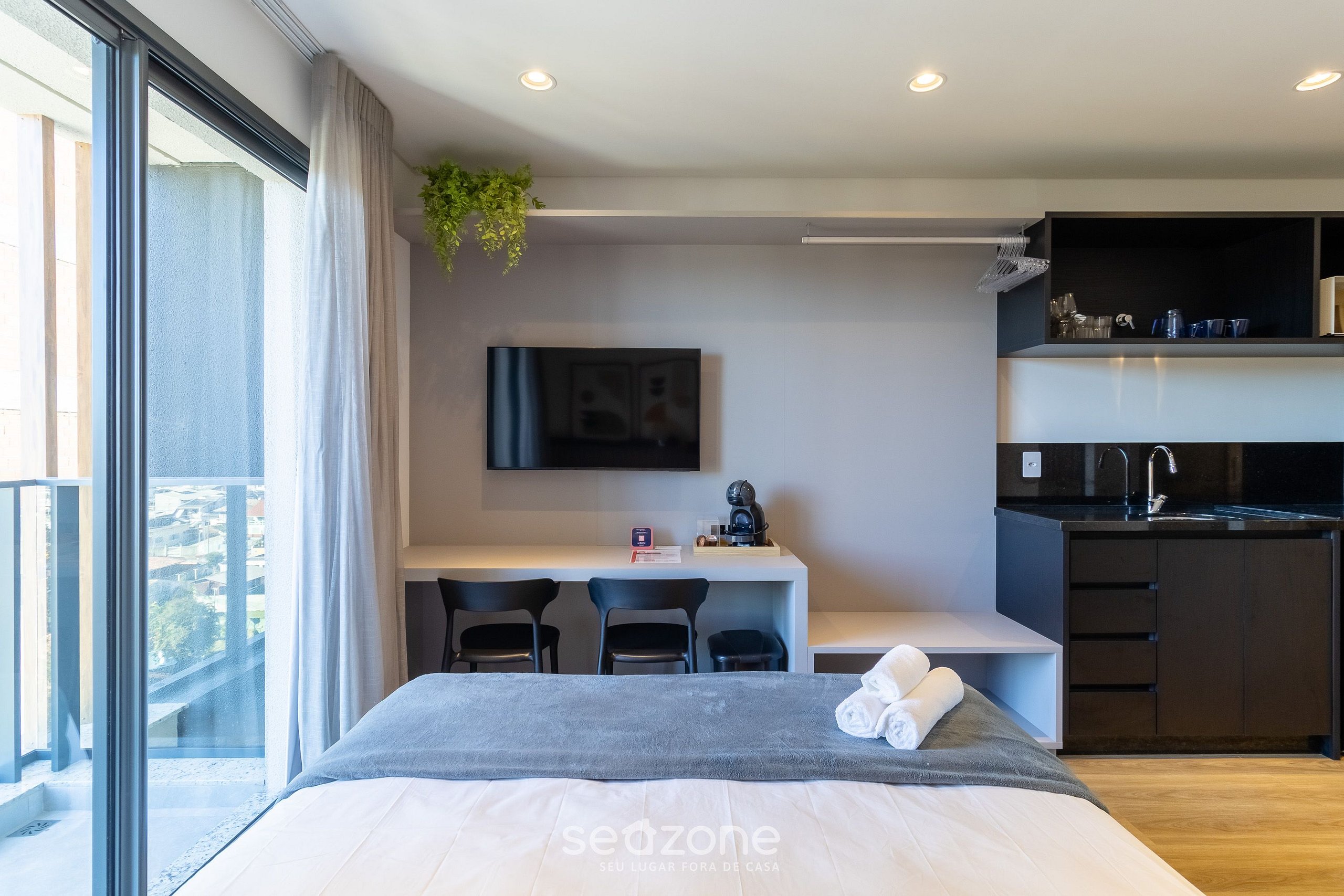 O empreendimento dispõe de 9 andares, 99 unidades e possui studios de 24m² à 48m², contendo em sua área comum: Piscina ao ar livre, deck com espreguiçadeiras e mesas além de área integrada e estacionamento.